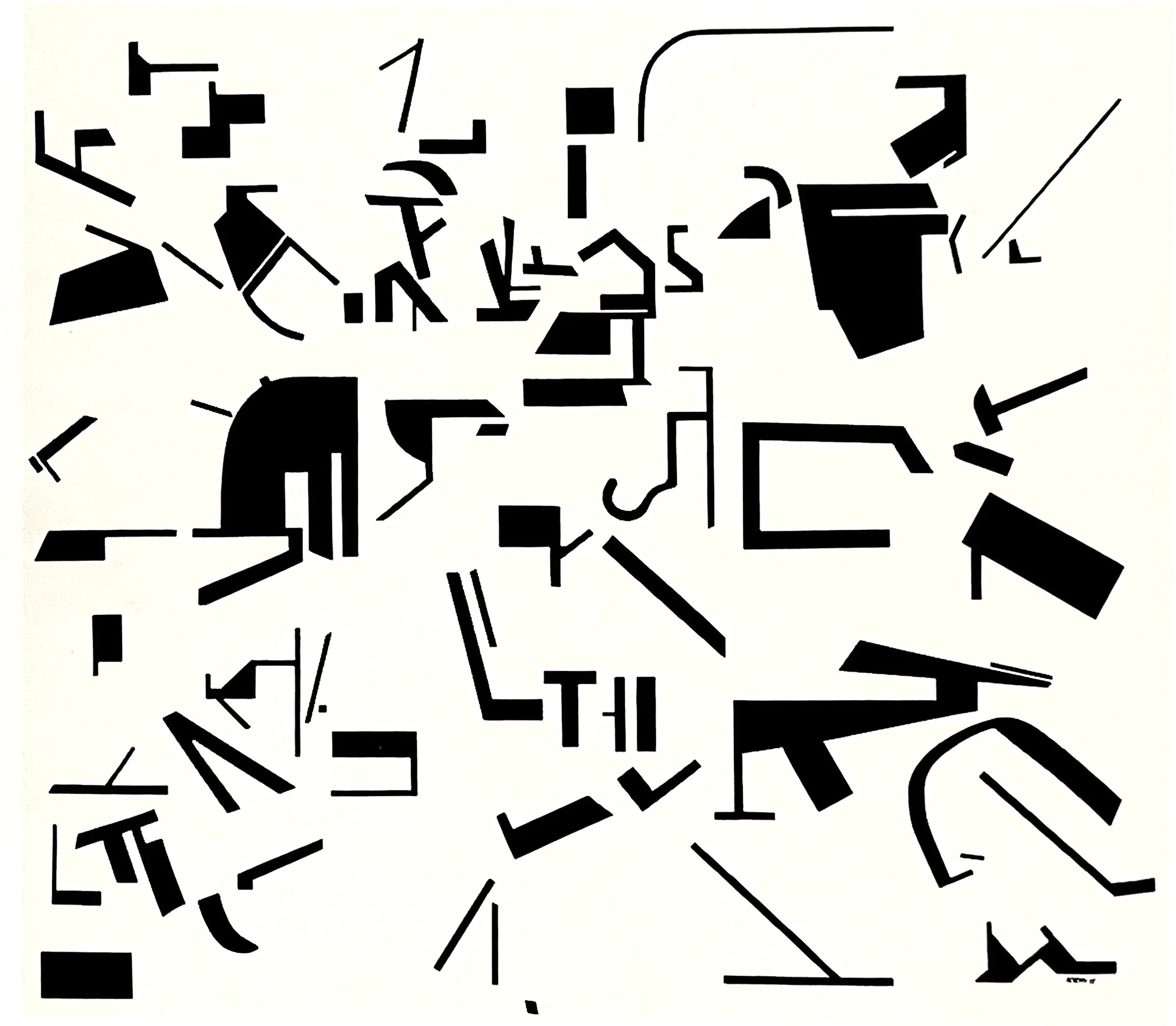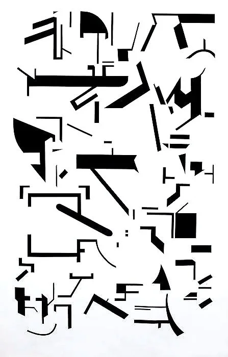 Vertical Composition 1976, print painting on paper, 24" x 18"